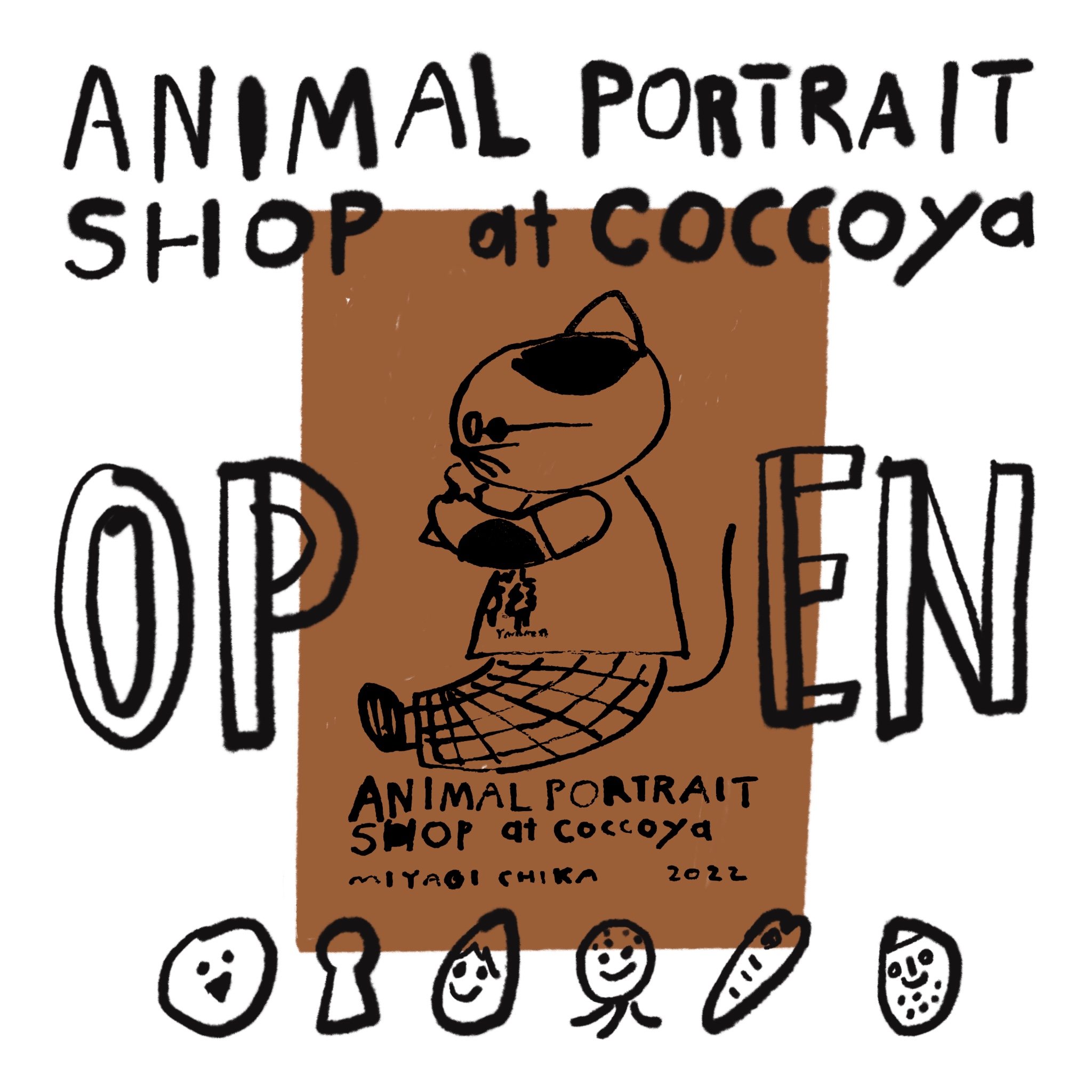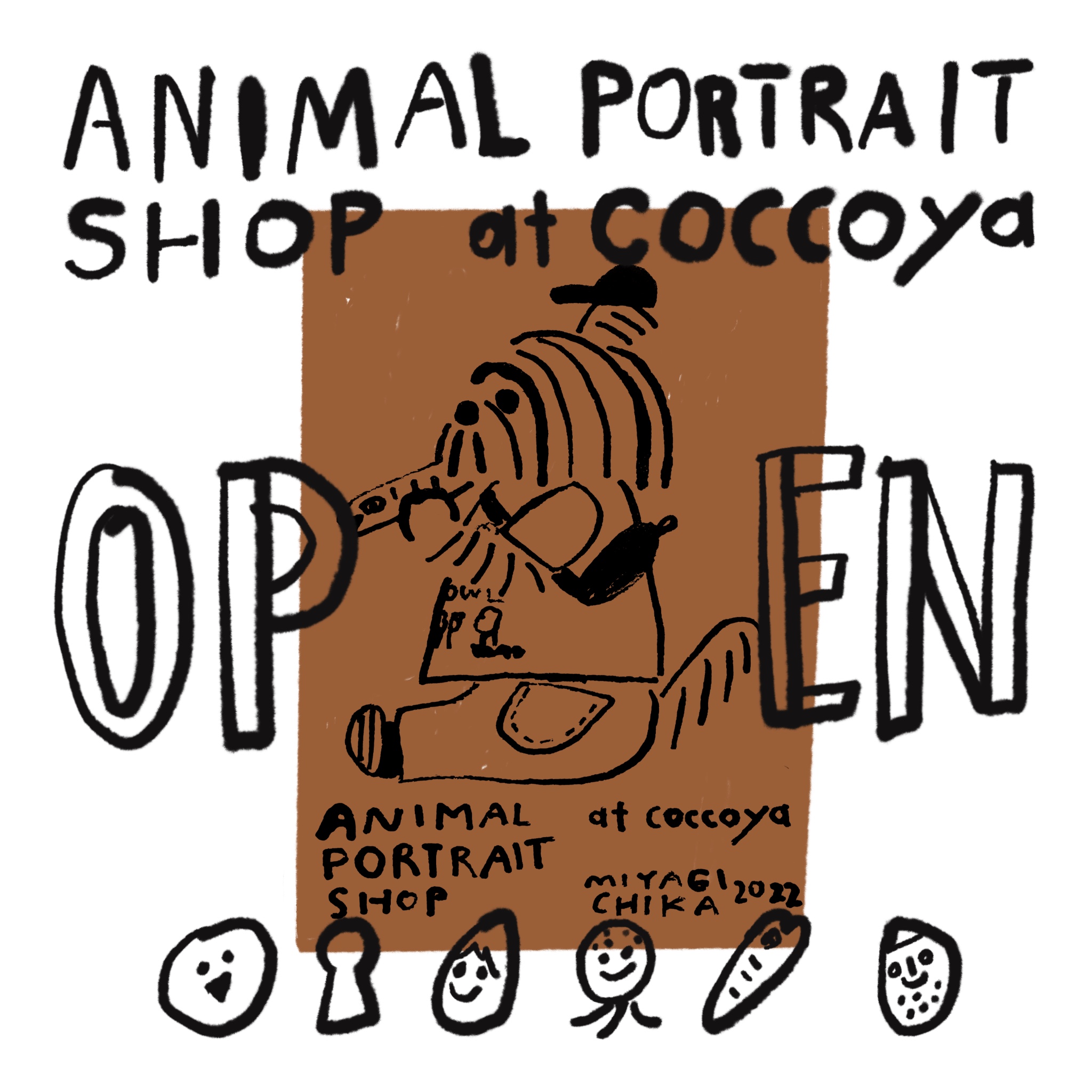 イラストレーターのみやぎによる動物似顔絵「ANIMAL PORTRAIT SHOP」も一緒に OPEN します。動物になりたい方はぜひー!(こちらは Instagram の @coccoya アカウントから詳細をお知らせする予定です!)